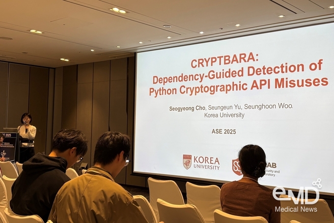 □ 고려대학교(총장 김동원) 컴퓨터학과 우승훈 교수 연구팀이 파이썬 코드에서 발생하는 암호 기능 오용을 자동으로 탐지하는 기술 'CRYPTBARA'를 개발해, 11월 19일 서울 그랜드워커힐에서 열린 소프트웨어공학 국제 학술대회 ‘ASE 2025(The 40th IEEE/ACM International Conference on Automated Software Engineering)’에서 성과를 발표했다.