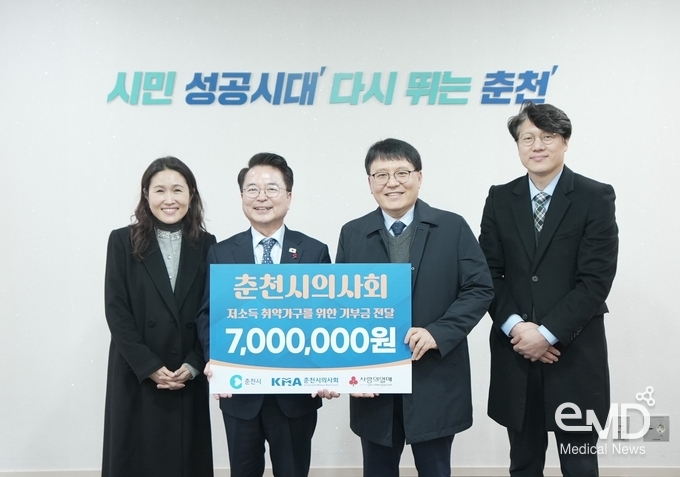 춘천시의사회(회장 이재요, 이&신소아청소년과의원 원장)는 2025년 12월 24일(수) 춘천시청 접견실에서 지역 내 취약계층 지원을 위한 성금 700만 원을 강원사회복지공동모금회에 기탁하며, 2025년에도 지역사회와 함께하는 나눔 활동을 지속했다.