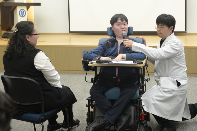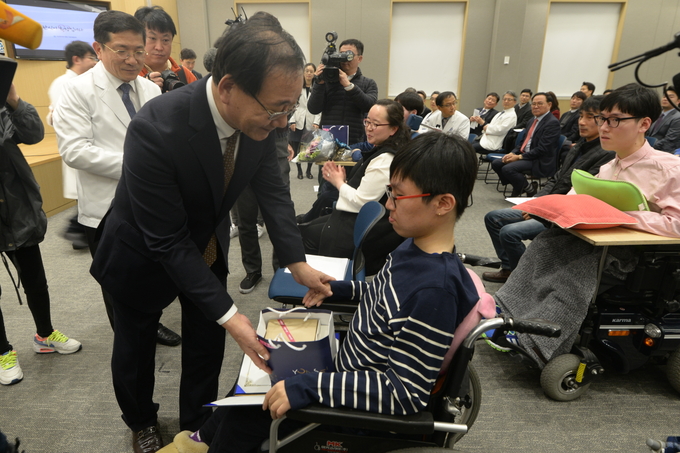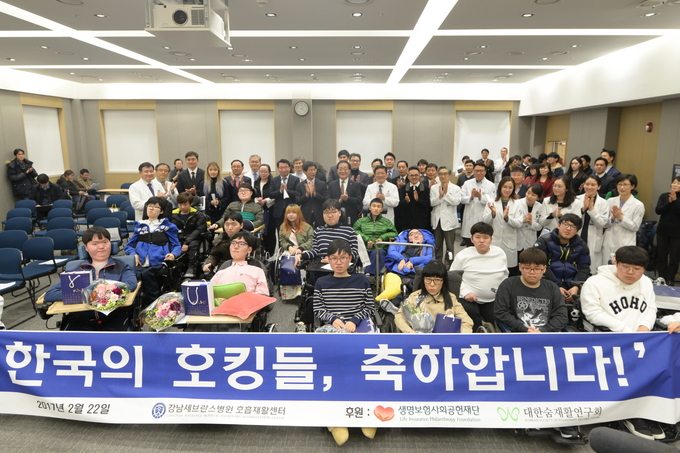 연세대학교 강남세브란스병원 호흡재활센터(소장 강성웅)는 22일 병원 3층 중강당에서 사지마비뿐만 아니라 호흡장애를 겪으면서도 학업에 정진해 대학 입학 및 졸업을 맞은 신경근육병 환자들을 축하하기 위한「한국의 호킹들, 축하합니다!」행사를 가졌다.