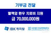 혈액질환 및 암 환우의 치료 환경 개선을 위해 IBK캐피탈이 KBDCA 한국혈액암협회(회장 장태평)에 7천만 원을 후원했다. 후원금 전달식은 8월 20일 협회에서 진행되었으며, 협회는 해당 후원금을 바탕으로 총 28명의 환우에게 1인당 250만 원씩 치료비를 지원할 예정이다. IBK캐피탈은 지난해에도 환우들의 조혈모세포이식 비용으로 5천만 원을 후원하며 환우 곁을 지켜왔으며, 올해는 후원 규모를 확대해 더 많은 환우들에게 실질적인 희망을 전하게 됐다. 한국혈액암협회 장태평 회장은 “경제적 부담으로 치료를 이어가기 어려운 환우들에게 큰 힘이 될 수 있는 뜻깊은 나눔”이라며 “환우들이 치료와 회복에만 집중할 수 있도록 협회 역시 다양한 지원사업을 지속해 나가겠다”고 전했다. 이번 치료비 지원은 2025년 하반기부터 순차적으로 집행되며, 치료비 마련에 막막함을 느끼는 환우 가정에 실질적 도움을 줄 것으로 기대된다.