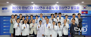 ●‘제22차 캄보디아 의사 연수 수료식 및 임상 연구 발표회’ 개최 ●22년간 총 71명 초청 연수… 선진 의술·인간사랑 정신 전수 순천향대학교 부천병원(병원장 문종호)이 22년째 캄보디아 의학 발전을 견인하고 있다. 병원은 9월 17일 원내 순의홀에서 ‘제22차 캄보디아 의사 연수 수료식 및 임상 연구 발표회’를 개최했다. 순천향대학교 중앙의료원 한캄봉사회(회장 유병욱)와 순천향대 부천병원은 2004년부터 의료 환경이 열악한 캄보디아 의사들을 초청해 1년간 무료 연수 프로그램을 제공하며 선진 의술 전수에 힘써왔다. 이번에 연수를 마친 캄보디아 의사는 펭 소피나(중환자실·신경과), 삼 프라트나(마취통증의학과), 람 티야(외과) 등 3명이다. 수료식에는 문종호 병원장, 김병성 진료부원장, 이유경 연구부원장이 참석해 수료증과 수료패, 청진기, 순천향대 배지를 전달하며 연수 성료를 축하했다. 이어 3명의 의사는 1년간의 연구 성과를 각각 발표했다. 문종호 병원장은 “올해 수료생 3명을 포함해 지난 22년간 총 71명의 캄보디아 의사가 우리 병원에서 연수를 성공적으로 마쳤다”며 “이들이 한국에서 배운 선진 의술과 순천향의 ‘인간사랑’ 정신을 캄보디아 현지에 전파하고