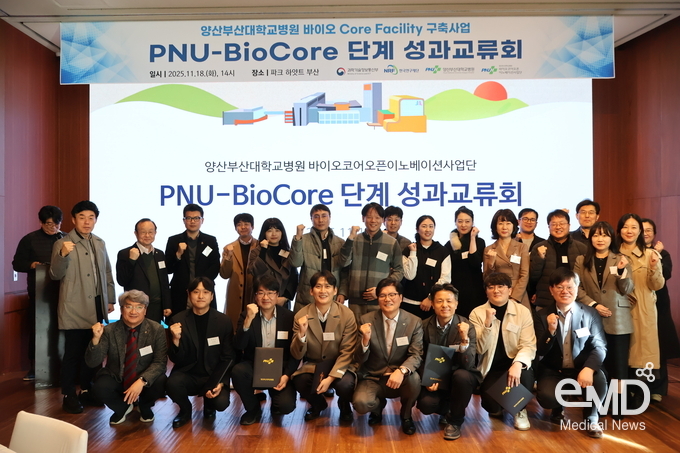 □ 양산부산대병원(병원장 이상돈)은 지난 18일 ‘바이오코어퍼실리티구축사업’의 1단계 성과를 공유하고 2단계 사업 추진 방향을 알리기 위한 ‘PNU-BioCore 단계 성과교류회’를 개최했다고 밝혔다. 행사에서는 1단계 공동연구개발기관 5개사를 ‘양산부산대병원 파트너기업’으로 지정하는 수여식도 함께 진행됐다.
