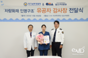 일산차병원(원장 송재만) 박채원(26) 간호사가 추석 연휴 경부고속도로 차량 전복·화재 사고 현장에서 인명을 구조한 공로를 인정받아 20일(월) 경기남부경찰청장(황창선 청장) 표창을 받았다. 추석 연휴 전날인 지난 5일(일) 오후 10시 40분쯤, 박 간호사는 귀가 중 경부고속도로 신갈분기점 부근에서 전복된 차량에 불이 붙은 것을 발견했다. 박 간호사는 차량을 갓길에 정차한 뒤, 동승한 예비신랑 이항정(27) 씨와 함께 차량에 있던 소화기로 신속히 화재를 진압했다. 이들은 불길을 잡은 뒤 차량 안에 있던 운전자 A씨를 발견했다. 박 간호사와 이 씨는 사고 차량으로 인한 2차 추돌과 재발화를 우려해 주변 시민들과 함께 A씨를 안전한 갓길로 옮겼다. 이후 박 간호사는 A씨의 맥박을 확인하고 통증 정도·양상·위치를 평가하는 통증 사정과 마비 여부 등을 기록하며 환자의 상태를 체크했다. 이어, 박 간호사는 간단한 질문을 통해 A씨의 의식을 점검하고, 연기를 다량 흡입한 환자가 의식을 잃지 않도록 대화를 이어갔다. 몇 분 뒤, 신고를 받고 출동한 경찰과 구급대원이 현장에 도착하자 박 간호사는 환자의 상태를 구급대원에게 인계한 뒤 현장을 떠났다. 병원으로 옮겨진 A씨는