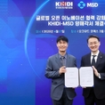 세계적인 바이오 제약기업 MSD(‘Merck & Co., Inc., Rahway, NJ, USA’의 상호)의 한국지사인 한국MSD(대표이사 김 알버트)는 한국보건산업진흥원(원장 차순도, 이하 진흥원)과 오픈 이노베이션 협력 강화를 위한 양해각서(MOU)를 체결하고,국내 보건의료산업 및 유망 제약·바이오 기업의 글로벌 경쟁력 강화를 위한 상호 협력에 나선다고 밝혔다. 한국MSD는 한국보건산업진흥원과 2026년 4월 27일 오전 오크우드 프리미어 코엑스 센터(서울시 강남구)에서 오픈 이노베이션 협력 강화를 위한 양해각서(MOU)를 체결했다. 이번 협약에 따라 한국MSD와 진흥원은 국내 기업과MSD 간 교류를 촉진하고 글로벌 파트너십을 지원하기 위한 협력 플랫폼을 단계적으로 확대한다. 양측은 한국 보건의료산업의 글로벌 도약이라는 공동 목표 아래 지속적인 협력 관계를 구축하고, 한국이 글로벌 제약·바이오 혁신 생태계에서 핵심 파트너로 자리할 수 있도록 함께 노력해 나갈 계획이다.특히 MSD의 글로벌 연구개발(R&D)전문성을 바탕으로 국내 유망 제약·바이오 기업과의 지식 공유 및 네트워킹 기회를 확대하는 협력 프로그램을 추진할 예정이다. 협력의 첫걸음으